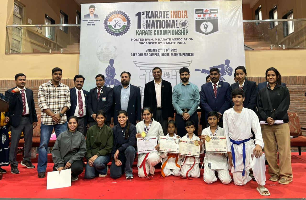 देवास। कराते इंडिया नेशनल चैंपियनशिप 2 से 5 जनवरी तक डेली कॉलेज इंदौर में यह प्रतियोगिता संपन्न हुई। इस प्रतियोगिता में कराते एसोसिएशन ऑफ देवास के 5 खिलाड़ी ने मध्य प्रदेश कराते एसोसिएशन का प्रतिनिधित्व करते हुए मनन डाबी, तन्मय भद्रेजा, हर्षित पटेल ने प्रथम स्थान प्राप्त किया और माधृती चितरे ने द्वितीय स्थान प्राप्त किया कृष्णा सिंह तोमर ने सहभागिता प्राप्त की। इस उपलब्धि पर कराटे इंडिया और कराटे एसोसिएशन आफ देवास के अध्यक्ष महाराज श्रीमंत विक्रम सिंह पवार, उपाध्यक्ष श्री राजेश यादव, श्री अजय सूर्यवंशी, जुगनू गोस्वामी, श्री जितेंद्र वर्मा, सह सचिव श्री सचिन परिहार, श्री दीपक बामनिया, श्री अक्षय और सीनियर खिलाड़ी यश मकवाना, नितिन शर्मा, तरुण परमार, पंकज मौर्या, रघुवीर सिंह चौहान, राजदीप चौहान, यशस्वी सेन, अमीषा पटेल, कृतिका सेन,पारोमिता दास, कृति बेस , अंजलि दवे, भूमिका पटेल, प्रेरणा राय, हिमांशु चौधरी, राहुल वर्मा, उर्मिला सोनार, राज सोनी, राजेश्वरी, सभी ने बधाई दी यह जानकारी कराटे एसोसिएशन ऑफ देवास के सचिव आतिश माली द्वारा दी।