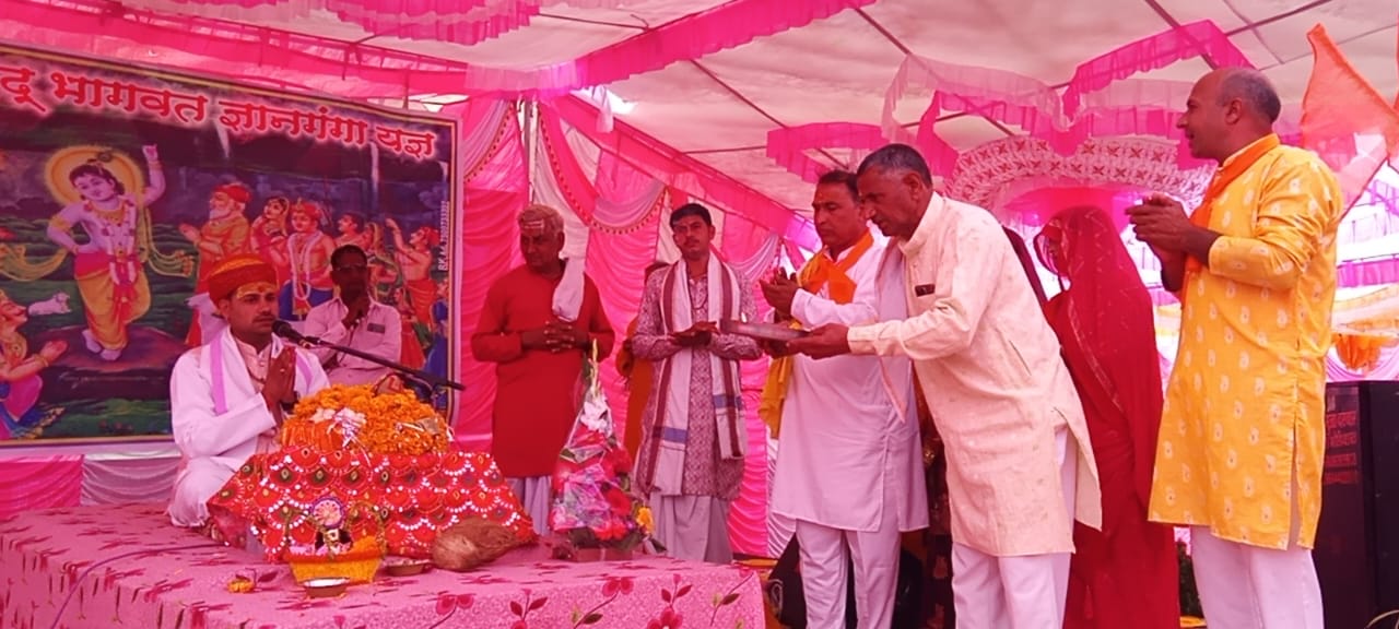 देवास। धूल महू, जिला उज्जैन निवासी प्रसिद्ध कथावाचक पंडित श्री नागेश्वर जी शर्मा के मुखारविंद से श्रीमद् संगीत भागवत ज्ञान कथा का भव्य शुभारंभ माँ क्षिप्रा नदी तट पर धार्मिक विधि-विधान के साथ संपन्न हुआ। कथा प्रारंभ से पूर्व माँ क्षिप्रा नदी तट पर श्रीमद् भागवत ग्रंथ एवं कलश की विधिवत पूजा-अर्चना की गई। इसके पश्चात महिलाओं द्वारा कलश में पवित्र जल भरकर सिर पर कलश धारण किया गया। इसके बाद भव्य चल समारोह निकाला गया, जिसमें हजारों की संख्या में श्रद्धालुजन बैंड-बाजों के साथ भक्ति भाव में झूमते हुए शामिल हुए। चल समारोह के दौरान भक्तजनों एवं श्रद्धालुओं द्वारा पंडित नागेश्वर शर्मा का स्थान-स्थान पर श्रीफल एवं पुष्पमालाओं से भव्य स्वागत किया गया। पूरा क्षेत्र भक्ति संगीत और जयकारों से गूंज उठा। इस अवसर पर ग्राम के वरिष्ठ समाजसेवी गौरीशंकर चौधरी ने समस्त ग्रामवासियों एवं क्षेत्रीय श्रद्धालुओं से श्रीमद् संगीत भागवत कथा श्रवण हेतु कथा स्थल पर अधिक से अधिक संख्या में पहुंचने का आग्रह किया।