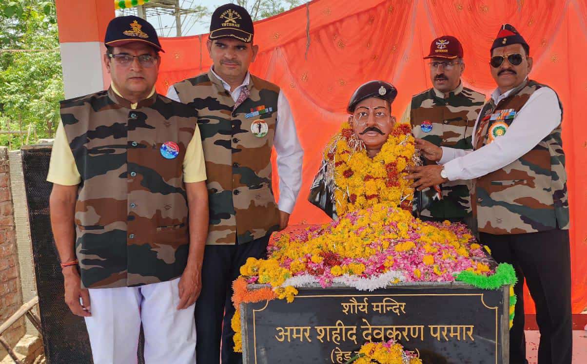 देवास। अमर शहीद देवकरण परमार सीमा सुरक्षा बल की शहादत 06.12 2021 हुई थी। उनके परिवार ने यह प्रण लिया था कि उनका शौर्य स्मारक बनवाया जाएगा। आज परिवार का प्राण पूर्ण हुआ। मुख्य रूप शोर्य स्मारक बनवाने में सहयोग संस्था शौर्य नमन देवास जिला पूर्व सैनिक एक्स सर्विस मैन वेलफेयर सोसाइटी देवास का रहा। कार्यक्रम की शुरुआत मंत्र उच्चारण के साथ परिवार के द्वारा शौर्य स्मारक मूर्ति का अनावरण किया गया। जिसके बाद परिवार का शाल व श्रीफल के द्वारा स्वागत किया गया। उनकी पत्नी सुलोचना परमार के द्वारा उन्हीं की वर्दी पहन ली और ट्रेनिंग के पश्चात सबसे पहले अपने पति के स्मारक पर सैल्युट दिया तथा अपना प्रण पूर्ण किया। शहीद की पत्नी सीमा सुरक्षा बल में कांस्टेबल के तौर पर 2023में भर्ती हो गई। इस कार्यक्रम में जिला पंचायत सदस्य भेरुलाला अटरिया, एक्स सर्विस मैन वेलफेयर सोयायटी के सदस्य, देवास जिले के संपूर्ण सैनिक और बड़ी संख्या में ग्रामीणजन उपस्थित रहे।