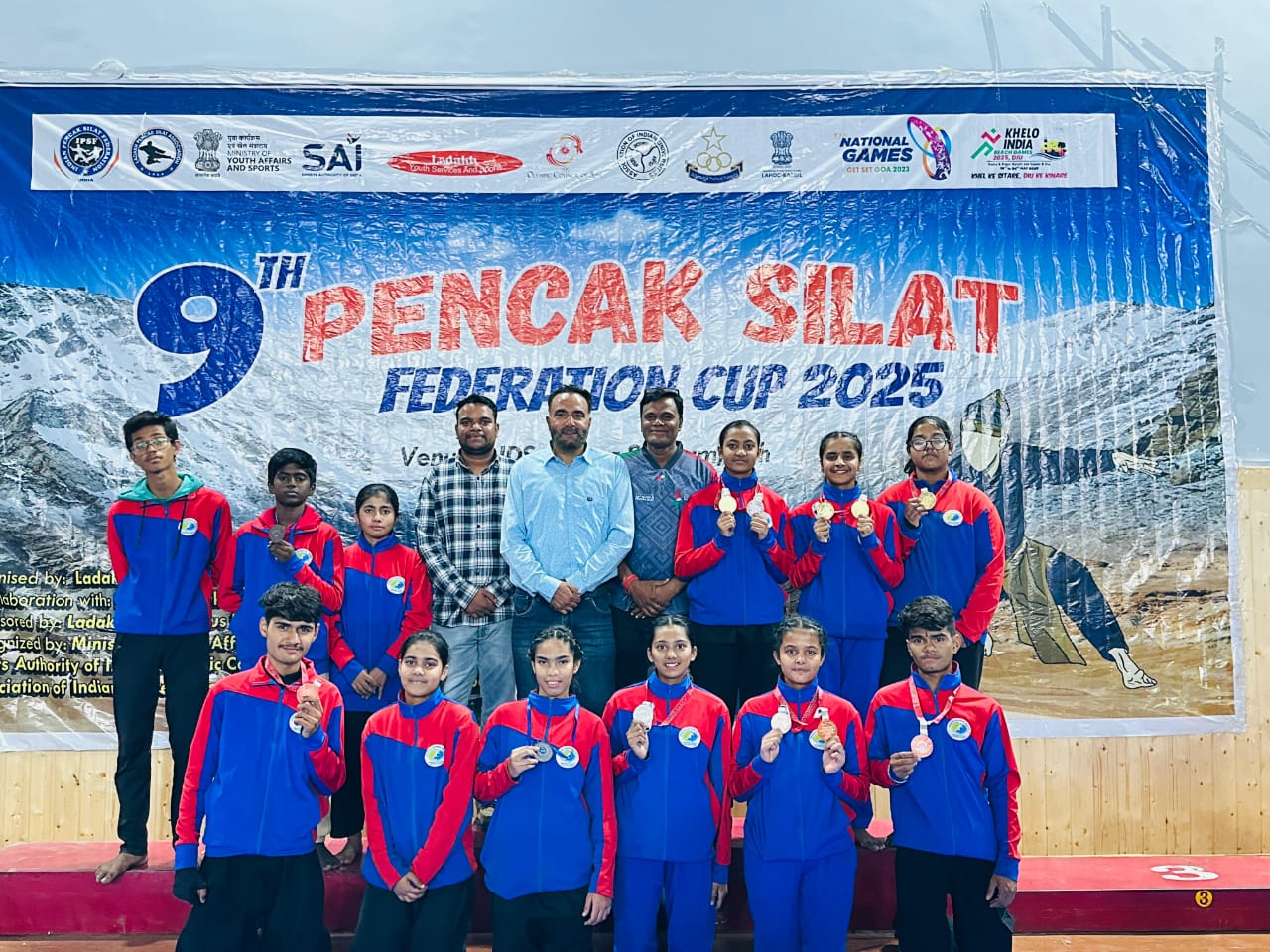 देवास। नवी पेंचक सिलाट फेडरेशन कप जो कि लेह लद्दाख में 2 से 4 अगस्त तक मल्टी स्पोर्ट्स कॉम्प्लेक्स में संपन्न हुई। पेंचक सिलाट एसोसिएशन  मप्र के अध्यक्ष अबरार अहमद शेख ओर महासचिव अभय श्रीवास ने बताया कि पूरे भारत वर्ष से 500 खिलाड़ियों ने इस प्रतियोगिता में भाग लिया। जिसमें मध्यप्रदेश के जूनियर खिलाड़ियों ने शानदार प्रदर्शन कर 3 स्वर्ण पदक, 5 रजत और 5 कांस्य पदक ओर सीनियर में 3 स्वर्ण पदक टोटल 16 पदक जीते। जूनियर टेंडिंग (फाइट) में वैष्णवी सूर्यवंशी ने -51 किग्रा, हर्षिल पटेरिया ने किग्रा और जान्हवी सरकार ने -92 किग्रा भार वर्ग में स्वर्ण पदक जीता। वैष्णवी झाला -47 किग्रा, प्रतिज्ञा अगीरवाल -39 किग्रा, आर आर्य शिवस्वामी 39 किग्रा में कांस्य पदक जीता।