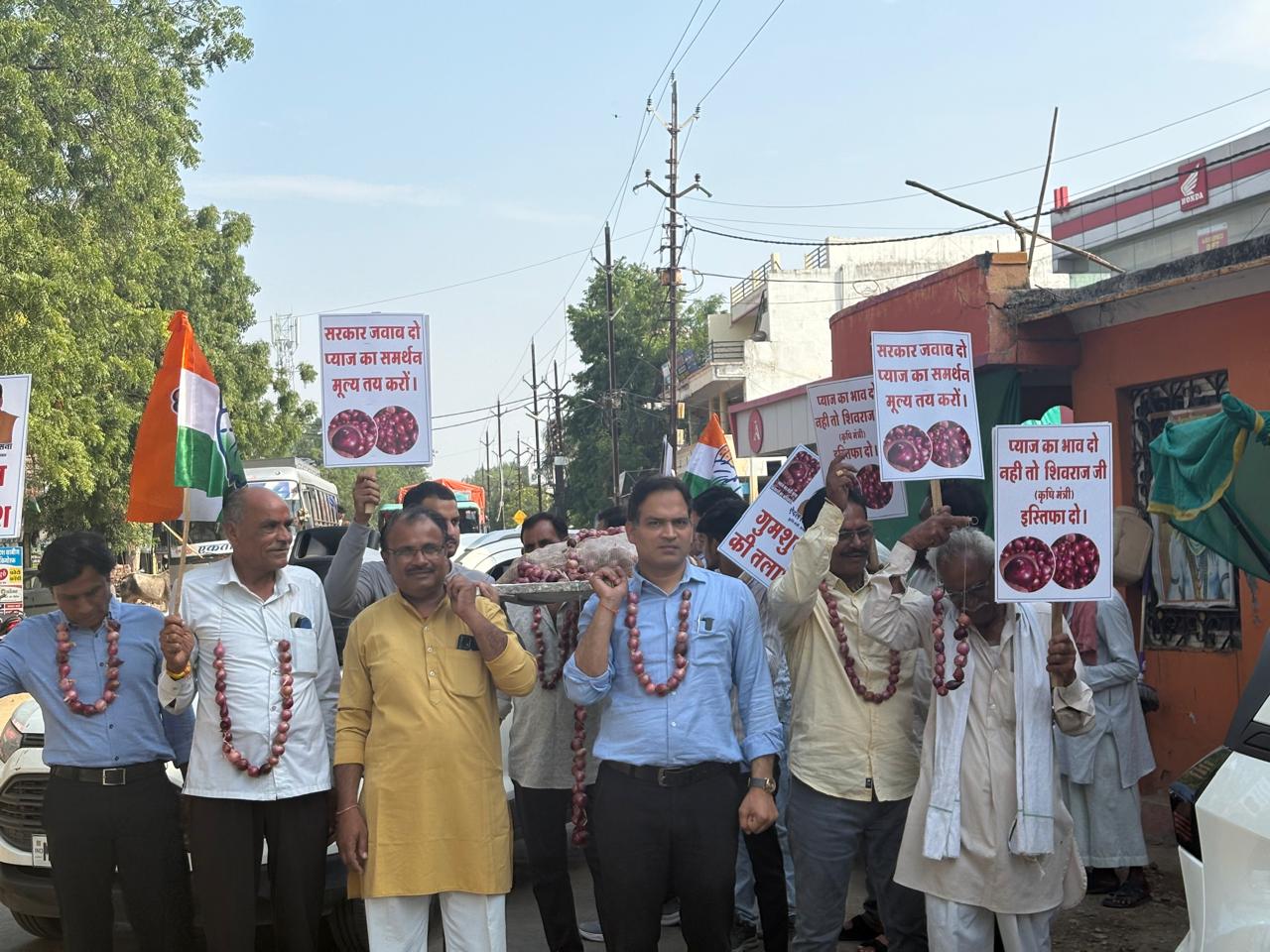 देवास। सरकार से की समर्थन मूल्य की माँगदेवास। प्याज की लगातार गिरती कीमतों और सरकारी उदासीनता के खिलाफ किसानों का आक्रोश फूट पड़ा। सोमवार को हाटपिपल्या में जिला कांग्रेस कमेटी देवास के नेतृत्व में किसानों ने ‘प्याज की शव यात्रा’ निकालकर अनोखा विरोध प्रदर्शन किया। किसानों ने प्रतीकात्मक रूप से प्याज को अर्थी पर रखकर उसे कांधे पर उठाया और नारों के साथ तहसील कार्यालय तक जुलूस निकाला। इस मौके पर किसान नेता रविन्द्र चौधरी ने कहा कि किसान आज भारी संकट में हैं। 8-10 रुपये प्रति किलो की लागत से उगाई गई प्याज की बाजार में कीमत मात्र 2-3 रुपये किलो मिल रही है। यह न सिर्फ किसानों के आर्थिक शोषण का प्रतीक है, बल्कि उनके आत्मसम्मान पर भी गहरी चोट है। ज्ञापन के माध्यम से किसानों ने माँग की कि सरकार तुरंत प्याज के लिए 15 रुपये प्रति किलो का समर्थन मूल्य घोषित करे, सरकारी खरीदी शुरू की जाए, भारी नुकसान झेल रहे किसानों को मुआवजा दिया जाए, और सहकारी समितियों से लिए कृषि ऋण की अंतिम तिथि 15 जून 2025 तक बढ़ाई जाए। जिला अध्यक्ष अशोक पटेल ने चेतावनी दी कि अगर सरकार ने जल्द कदम नहीं उठाया, तो कांग्रेस पार्टी किसानों के साथ मिलकर चरणबद्ध आंदोलन करेगी। इस प्रदर्शन में पूर्व विधानसभा प्रत्याशी राजवीर सिह बघेल, किसान कांग्रेस अध्यक्ष विक्रम मुकाती, वरिष्ठ कांग्रेस नेता बी एल मोदी नगर अध्यक्ष गुड्डू जयसवाल, पूर्व पार्षद कैलाश पटेल नागदा, पार्षद राजेश तंवर , यूथ कांग्रेस से अरुण बराया, दीपक गुर्जर, रोहित, राजेश पटेल, जगदीश पटेल, देवेन्द्र चौधरी सहित बड़ी संख्या में किसान और कांग्रेस कार्यकर्ता मौजूद थे। किसानों की यह ‘प्याज की शव यात्रा’ क्षेत्र में चर्चा का विषय बन गई है और अब देखना यह होगा कि सरकार इस आक्रोश का क्या जवाब देती है।