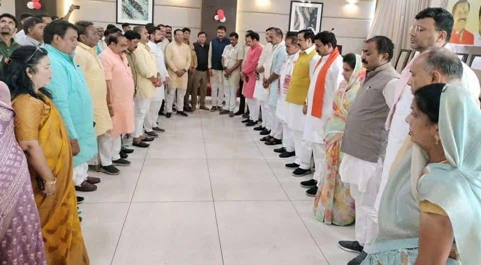 देवास। प्रधानमंत्री नरेन्द्र मोदी जी के नेतृत्व में केंद्र सरकार के विकसित भारत का अमृतकाल सेवा,सुशासन, गरीब कल्याण 11 साल पुर्ण होने पर भारतीय जनता पार्टी जिला देवास प्रोफेसनल मीट व प्रेस वार्ता रखी गई थी । किंतु अहमदाबाद मे एयर इंडिया प्लेन क्रेश हो गया। जिसमें सैकडों की संख्या में लोगों ने अपनी जान गवाई है । इसके चलते भाजपा जिला देवास ने अपने सभी संगठात्मक कार्यक्रम निरस्त कर कर दिये । कार्यक्रम हेतु पधारे डॉक्टर महेन्द्रसिंह प्रदेश भाजपा ने दो मिनट को मौन रखकर मृतको को श्रद्धांजलि दी। इस अवसर पर डॉक्टर महेंद्र सिंह जी भाजपा प्रदेश प्रभारी, प्रदेश भाजपा उपाध्यक्ष जीतू जिराती, आशीष अग्रवाल, भारतीय जनता पार्टी प्रदेश मीडिया प्रभारी, भाजपा जिला अध्यक्ष रायसिंह सेंधव , महेंद्र सिंह सोलंकी प्रदेश प्रवक्ता व सांसद, विधायक श्रीमंत गायत्री गायत्री राजे पवार , खातेगांव विधायक आशीष शर्मा, हाटपिपलिया विधायक मनोज चौधरी , मुरली भंवरा , महापौर गीता दुर्गेश अग्रवाल , राजेश यादव पूर्व प्राधिकरण अध्यक्ष, पूर्व भाजपा जिला अध्यक्ष नंदकिशोर पाटीदार, पूर्व जिला पंचायत अध्यक्ष नरेंद्र सिंह राजपूत, भाजपा इंदौर पूर्व जिला अध्यक्ष गौरव रणदिवे, निगम सभापति रवि जैन सहित कई पदाधिकारी व कार्यकर्ता उपस्थित थे। उक्त जानकारी भाजपा सह जिला मीडिया प्रभारी कमल अहिरवार ने दी।