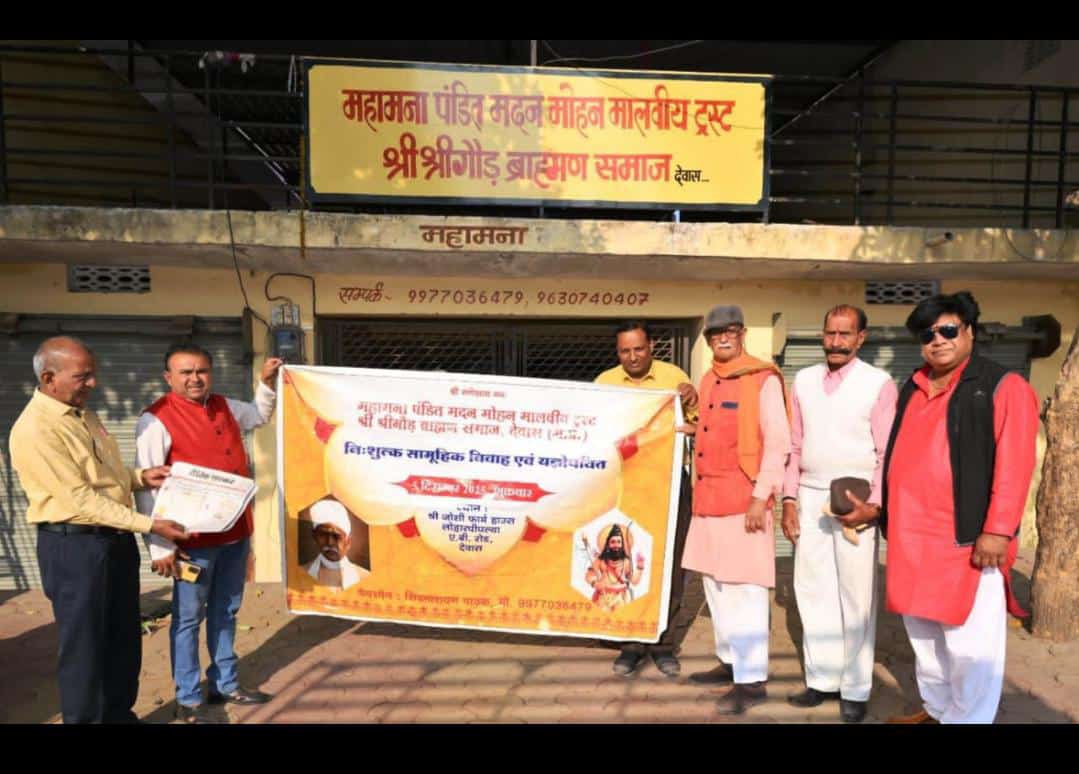 देवास। महामना मदन मोहन मालवीय श्री श्रीगौड़ ब्राह्मण समाज का निशुल्क सामुहिक सम्मेलन एवं यज्ञोपवीत का आयोजन दिनांक 5 दिसम्बर, शुक्रवार को एबी रोड स्थित जोशी फार्म हाऊस, अरगस गार्डन के सामने, देवास में होने जा रहा है। ट्रस्ट महासचिव पंकज पंड्या एवं संगठन प्रमुख सचिन जोशी ने बताया कि नि:शुल्क सामूहिक सम्मेलन को लेकर महामना ट्रस्ट एवं आयोजन समिति की आवश्यक बैठक पं. मदनमोहन मालवीय ट्रस्ट श्री श्रीगौड ब्राह्मण समाज 259/7 अन्नपूर्णा नगर पुलिस लाईन में सम्पन्न हुई। बैठक में उपस्थित ट्रस्ट के चैयरमेन शिवनारायण पाठक ने बैठक को संबोधित करते हुए बताया कि इस विवाह सम्मेलन में वर-वधू को आशीर्वाद प्रदान करने हेतु श्री श्री 1008 महामंडलेश्वर धरानन्द जी महाराज बीकानेर पधार रहे है। साथ ही आयोजन की तैयारियों को लेकर भी विस्तृत जानकारी दी। ट्रस्ट चैयरमेन ने सभी विप्र बंधु, सनातनियों से अपील की है कि उक्त विवाह सम्मेलन में अधिक से अधिक संख्या में शामिल होकर वर-वधू, बटुकों को आशीर्वाद प्रदान करे।