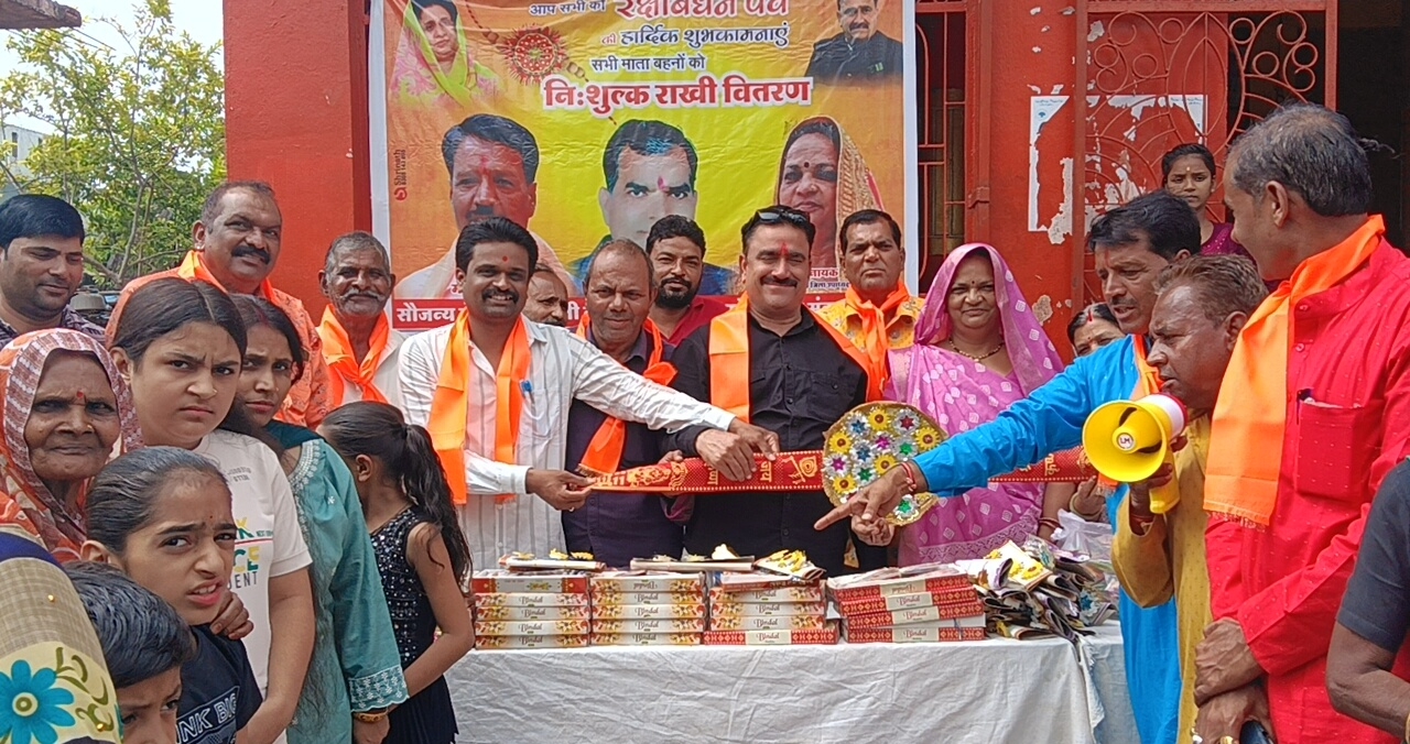 देवास। भाई-बहन के पवित्र त्यौहार रक्षा बंधन के एक दिन पूर्व वार्ड क्रमांक 15, अमोना में भाजपा अनुसूचित जाति मोर्चा जूनियर मंडल के नगर महामंत्री बाबूलाल नरवरिया द्वारा निःशुल्क राखी वितरण कार्यक्रम का आयोजन किया गया। यह आयोजन श्रीराम मंदिर परिसर में सम्पन्न हुआ। कार्यक्रम के मुख्य अतिथि स्थानीय पार्षद गणेश पटेल, मॉं चामुण्डा मंडल के महामंत्री भरत व्यास एवं उपाध्यक्ष सौदान सिंह परिहार विशेष रूप से उपस्थित रहे। कार्यक्रम की शुरुआत अतिथियों द्वारा श्रीराम मंदिर में राम दरबार को राखी अर्पित कर की गई। इसके पश्चात करीब दो घंटे तक चले कार्यक्रम में क्षेत्र की महिलाओं एवं बहनों को लगभग 5,000 आकर्षक राखियों का वितरण किया गया। राखियां पाकर बहनों के चेहरे पर प्रसन्नता देखने को मिली। इस अवसर पर प्रकाश मामा ठाकुर, धरमचंद्र पाटीदार, कमलेश शर्मा, शोभा दीदी, लीलाबाई, मंगु बाई, दयालु वर्मा, राकेश पटेल, रेखा डांगी, सुशीला पटेल सहित बड़ी संख्या में स्थानीय रहवासी मौजूद रहे। आयोजन को सफल बनाने में स्थानीय कार्यकर्ताओं और गणमान्य नागरिकों का विशेष योगदान रहा।