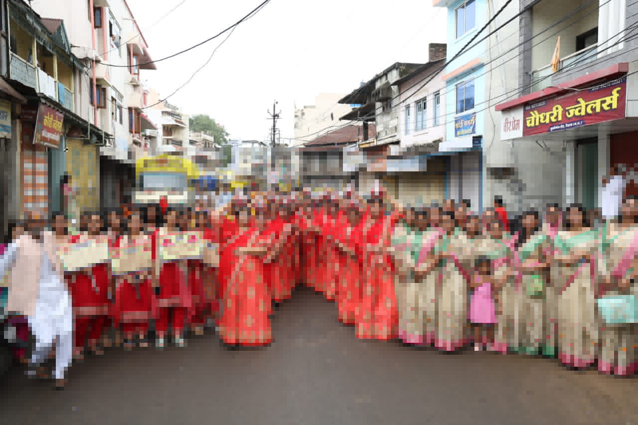 देवास।संत परिश्रम करता है तो बदले में परिवर्तन आना चाहिये-साध्वी तत्वरसाजी श्री शंखेश्वर पाश्र्वनाथ मंदिर तुकोगंज रोड पर चातुर्मास प्रवेश के उपलक्ष्य में भव्य शोभा यात्रा निकाली गई। उल्लेखनीय है कि इस वर्ष कलिकुंड के तीर्थ उद्धारक आचार्य राजेन्द्र सूरीश्वरजी एवं गच्छाधिपति राजशेखर सूरीश्वरजी तथा तत्वदर्शना श्रीजी म.सा. की सुशिष्या साध्वीजी श्री तत्वरसा श्रीजी, तत्वश्रेया श्रीजी, तत्वसम्प्रज्ञा श्रीजी, तत्वश्रमणा श्रीजी आदि ठाणा चार का चातुर्मास संपन्न होने जा रहा है। इस अवसर पर साध्वीजी जितेशरत्ना श्रीजी साध्वी मंडल विशेेष रूप से उपस्थित थे। प्रवक्ता विजय जैन ने बताया कि 6 जुलाई रविवार को सुबह श्री शंखेश्वर पाश्र्वनाथ मंदिर में सकल श्री संघ की नवकारशी के पश्चात मंडी धर्मशाला से चातुर्मास प्रवेश की अनेक आकर्षणो से सुसज्जित शोभा यात्रा प्रारंभ हुई। साध्वीजी की अगवानी में समाजजनों द्वारा अक्षत एवं श्रीफल की गहुली बनाकर स्वागत किया गया । शोभा यात्रा में दिव्य राजेन्द्र घोष एवं एकादश पूजन द्रव्य लेकर चल रही बालिका मंडल।