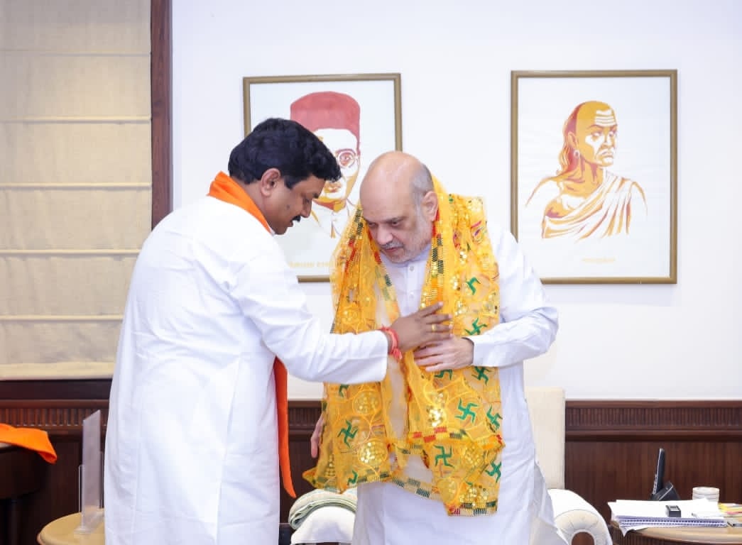 सांसद श्री सोलंकी ने की गृहमंत्री अमित शाह से भेंट, मां बगुलामुखी की चुनरी ओढ़ाकर अभिनंदन करते दी कार्यों की जानकारी